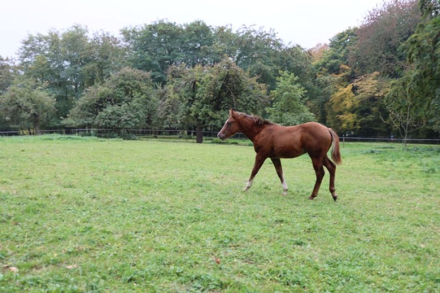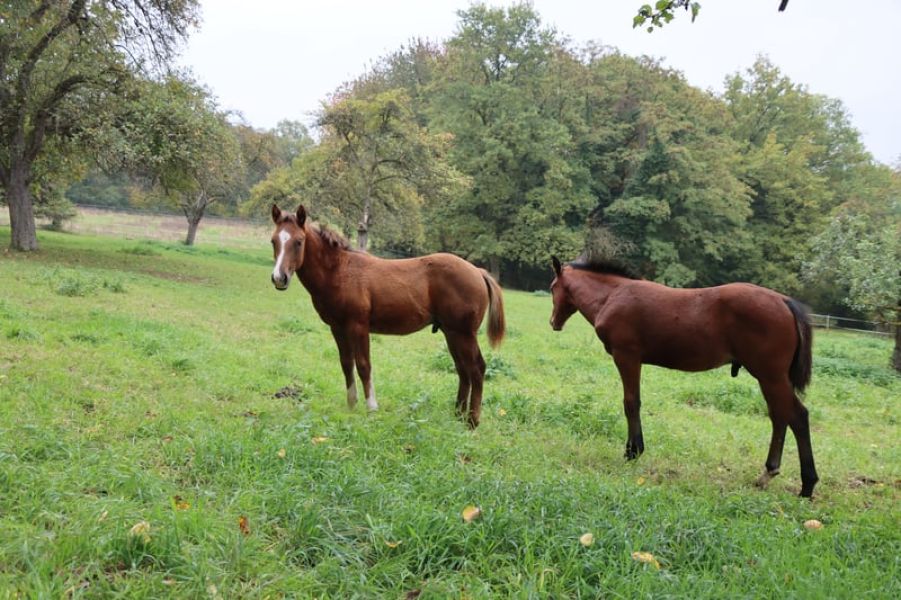 Zum Verkauf steht ein vielversprechender American Quarter Horse Hengstjährling (Jahrgang 2025, 05.07.25) in der Farbe Dunkelfuchs. Das geschätzte Endstockmaß liegt bei ca. 152 cm. Er überzeugt durch ein ruhiges, freundliches Wesen, eine angenehme Ausstrahlung und eine sehr gute Grundlage für die weitere Ausbildung im Reining.