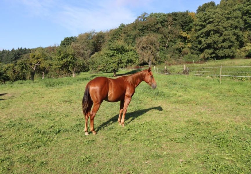 AH THE AMAZING SPOOK ist ein freundlicher, menschenbezogener American Quarter Horse Wallach in der Farbe Fuchs. Er stammt aus dem Jahrgang 2021 und überzeugt durch sein ausgeglichenes Wesen, seine Lernbereitschaft und seine vielseitige Veranlagung.