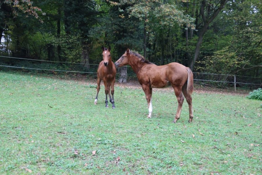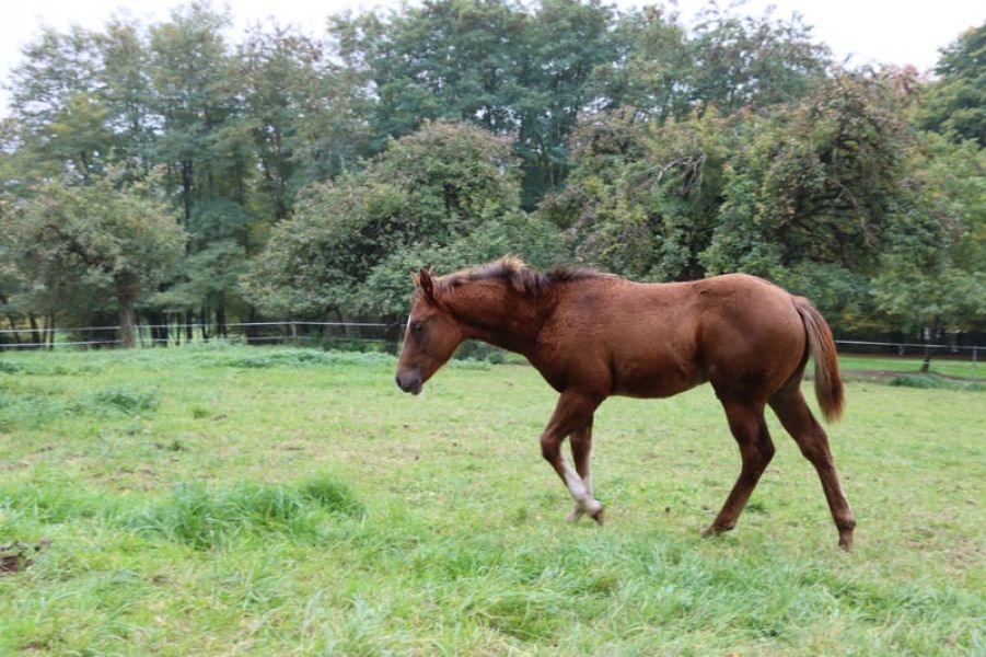 Zum Verkauf steht ein vielversprechender American Quarter Horse Hengstjährling (Jahrgang 2025, 05.07.25) in der Farbe Dunkelfuchs. Das geschätzte Endstockmaß liegt bei ca. 152 cm. Er überzeugt durch ein ruhiges, freundliches Wesen, eine angenehme Ausstrahlung und eine sehr gute Grundlage für die weitere Ausbildung im Reining.