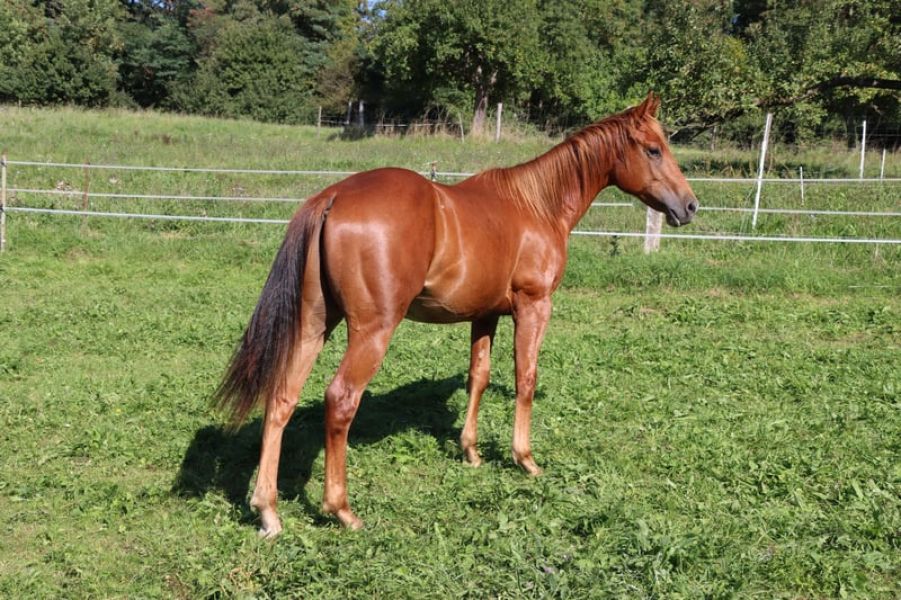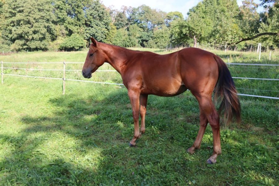 AH THE AMAZING SPOOK ist ein freundlicher, menschenbezogener American Quarter Horse Wallach in der Farbe Fuchs. Er stammt aus dem Jahrgang 2021 und überzeugt durch sein ausgeglichenes Wesen, seine Lernbereitschaft und seine vielseitige Veranlagung.
